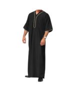 • 【Style】Chinese collar, shirt sleeve,placket with four buttons,left chest pocket and two side pockets. Modern classic men’s muslim arab robe, soft,loose, cool & comforatable fabric is good for summer.